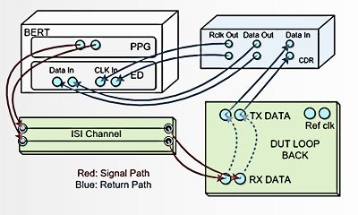对于被测高速电路的接收端需要进行接收机灵敏度的容限测试,在由BERT组成的测试回路过程中,BERT自身接收机的灵敏度需要高于被测电路。